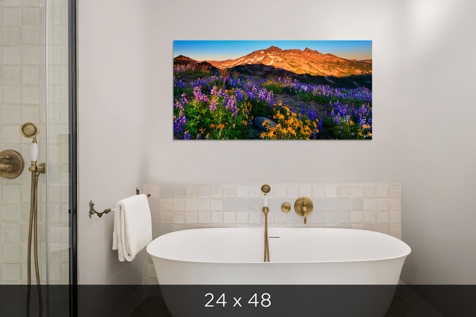 Add a huge splash of color to your home with this magnificent mountain wall art print. This panoramic wall art Metal Print will look great in dining rooms, bedrooms, kitchens, and bathrooms, and will be a constant reminder of just how beautiful the wilderness can be. Enjoy this Goat Rocks Wilderness photography art print as it redefines rocky mountain wall art.