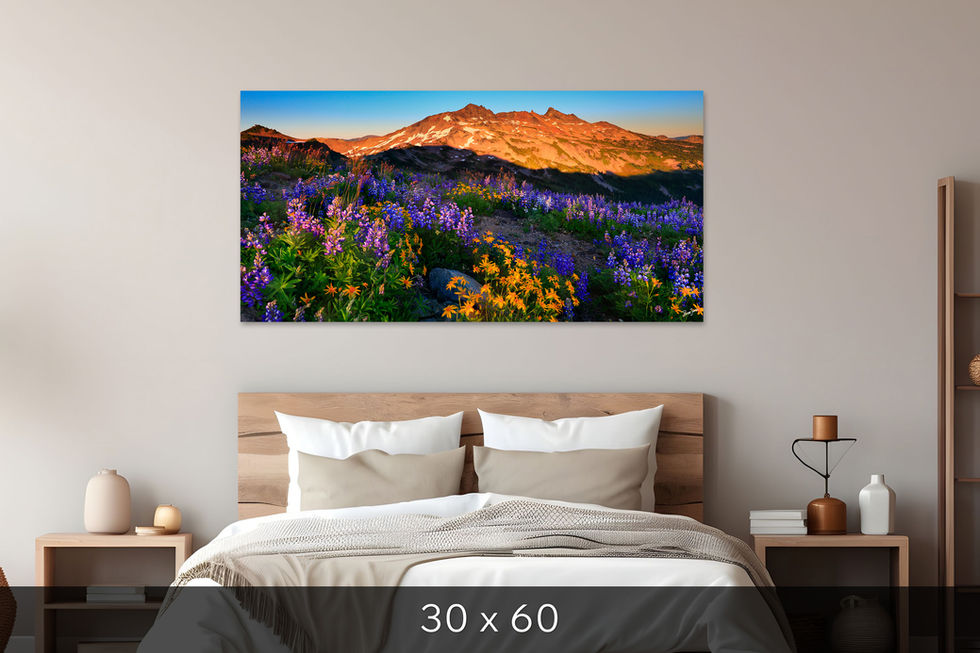 After hiking over 5 miles, I reached this wildflower covered ridge just as the last rays of sun were hitting it. I threw my pack down, grabbed my tripod, and set up my camera just in time to take this one, single mountain photograph before the light left the ridge and the wildflowers went into darkness. With Mount Baldly aglow in the background and this stunning floral show in the mid and foreground, this was certainly one of my favorite wildflower mountain photography wall art prints of the trip, and of the year.