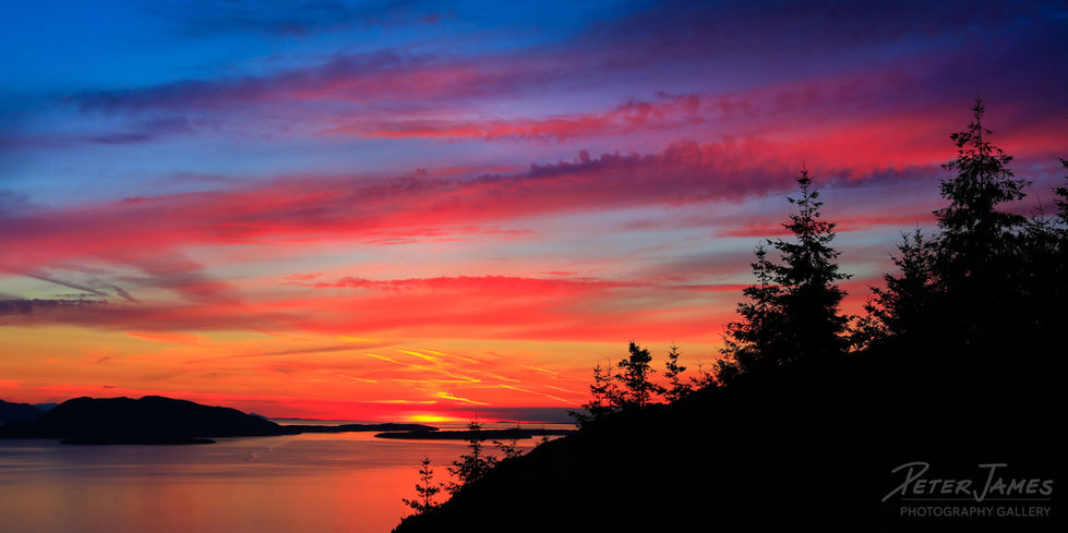Summer sunsets in Washington State can be truly magical, and this mid-July Pacific Northwest sunset photography print captures that perfectly. Taken from Blanchard Overlook at the south end of Chuckanut Drive and looking out at the northeastern most of the San Juan Islands, this fine art photography of Lummi Island and the Bellingham Bay captures the epic beauty of the Salish Sea.